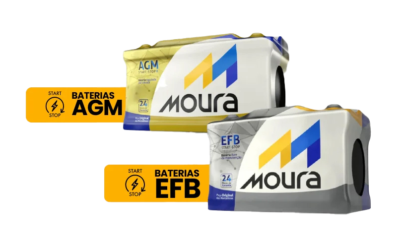 Baterias AGM e EFB Moura desempenho superior com tecnologia de ponta para seu veículo!